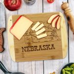 Savor a slice of this state with this beautiful bamboo serving and cutting board with artwork inspired by its cities, places and people. Fun, whimsical artwork features many of the wonderful sights and places. Beautiful flat grain bamboo, laser etched side serves as an ideal serving platter and the reverse smooth side is a great cutting surface; It’s friendly on knives and hand wash only. Bamboo is better for the environment; Moso® bamboo is incredibly durable. Complies with Prop 65. 11″ W x 8 3/4″ H x 1/2″ Thick