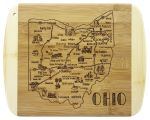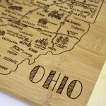 Savor a slice of this state with this beautiful bamboo serving and cutting board with artwork inspired by its cities, places and people. Fun, whimsical artwork features many of the wonderful sights and places. Beautiful flat grain bamboo, laser etched side serves as an ideal serving platter and the reverse smooth side is a great cutting surface; It’s friendly on knives and hand wash only. Bamboo is better for the environment; Moso® bamboo is incredibly durable. Complies with Prop 65. 11″ W x 8 3/4″ H x 1/2″ Thick