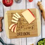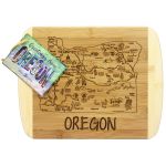 Savor a slice of this state with this beautiful bamboo serving and cutting board with artwork inspired by its cities, places and people. Fun, whimsical artwork features many of the wonderful sights and places. Beautiful flat grain bamboo, laser etched side serves as an ideal serving platter and the reverse smooth side is a great cutting surface; It’s friendly on knives and hand wash only. Bamboo is better for the environment; Moso® bamboo is incredibly durable. Complies with Prop 65. 11″ W x 8 3/4″ H x 1/2″ Thick