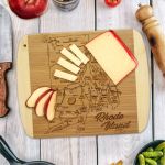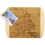 Savor a slice of Rhode Island with this beautiful bamboo serving and cutting board with artwork inspired by the cities, places and people of Rhode Island. Fun, whimsical artwork features many of the wonderful sights and places. Beautiful flat grain bamboo, laser etched side serves as an ideal serving platter and the reverse smooth side is a great cutting surface; It’s friendly on knives and hand wash only. Bamboo is better for the environment; Moso® bamboo is incredibly durable. Complies with Prop 65. 11″ W x 8 3/4″ H x 1/2″ Thick