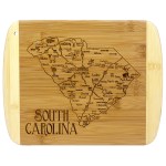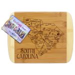 Savor a slice of this state with this beautiful bamboo serving and cutting board with artwork inspired by its cities, places and people. Fun, whimsical artwork features many of the wonderful sights and places. Beautiful flat grain bamboo, laser etched side serves as an ideal serving platter and the reverse smooth side is a great cutting surface; It’s friendly on knives and hand wash only. Bamboo is better for the environment; Moso® bamboo is incredibly durable. Complies with Prop 65. 11″ W x 8 3/4″ H x 1/2″ Thick