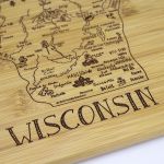 Savor a slice of this State with this beautiful bamboo serving and cutting board with artwork inspired by its cities, places and people. Fun, whimsical artwork features many of the wonderful sights and places. Beautiful flat grain bamboo, laser etched side serves as an ideal serving platter and the reverse smooth side is a great cutting surface; It’s friendly on knives and hand wash only. Bamboo is better for the environment; Moso® bamboo is incredibly durable. Complies with Prop 65. 11″ W x 8 3/4″ H x 1/2″ Thick