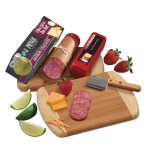 You can bet this heavy-duty, sustainable Bamboo chopping board, firebranded with your imprint, will be used and appreciated daily. We include a seven-ounce block of Private Stock Mild Cheddar, matched with a five-ounce stick of tangy Beef Summer Sausage and lastly a box of Water Crackers. The cleaver is included too to create the perfect charcuterie board. Complies with CPSIA, FDA, Prop 65. 8″ L x 5.75″ W x 0.5″ H