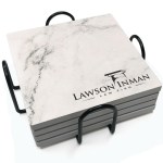 Super absorbent stone coasters with 8 upscale digital backgrounds are both functional and stylish. 5/16″ thick with cork backing in a natural kraft box. Complies with Prop 65. 4″ W x 4″ H x 5/16″ Thick