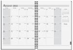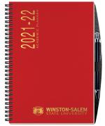 This journal planner has a sturdy heavyweight paperboard or poly cover. Includes 60 Lb. white offset sheets with 14 months (July to August) followed by 50 sheets printed with light gray rules on both sides. Comes wire-O bound on the left side in black with a black heavyweight back and a pen. 7″ W x 10″ H