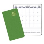 Academic Monthly Pocket Planner, 3-1/2″x6-1/2″: Saddle stitched. One month per opening. 14 months – Aug thru Sept. 3 1/2″ W x 6 1/2″ H