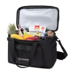 Go big on outdoor adventures with the Acadia XL Box Cooler. Crafted with recycled materials, it holds up to 56 cans and keeps them cold in a sleek, modern design. Features include a rugged Delrin(R) zipper, multiple pockets, elastic top cord, and adjustable carry options. Spacious, functional, and built to move with you. Complies with CPSIA, Prop 65. 9″ W x 11.75″ H x 17″ L