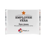 Great award at a great price! This self-standing extra large acrylic arc can be decorated with elegant laser or beautiful four color process. 9.75″ W x 7.0″ H x 1.0″ D