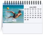 This tent calendar features 12 calendar sheets made with 80 Lb. gloss text paper that include front and back month-at-a-glance with room to write. Calendar is printed in back only and the back of the last calendar sheet has a year-at-a-glance calendar for the current and next year. The pre-scored back folds into an easel and is made from white cover stock that can be printed on 2 sides. Easel back has “Emergency Phone Numbers” and “Future Planning” areas. Bound with black Wire-O. Measures 5 13/16″x 6 ¼” flat for mailing. 5 13/16″ L x 4 1/2″ W