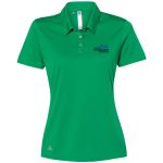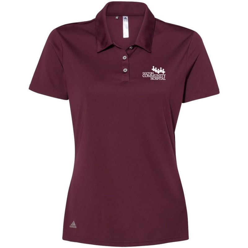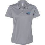 Hydrophilic finish. Self-fabric collar. Three-button placket. UPF 50+ protection. Silver heat-transfer logo on bodice