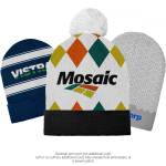 Design your own fully custom beanie with vibrant jacquard knitting, perfect for showcasing detailed patterns and lasting color. Choose up to 5 Pantone-matched colors to bring your vision to life. Want extra flair? Add a pom-pom or 3″ cuff for an additional charge. Complies with Prop 65. 8 1/2″ W