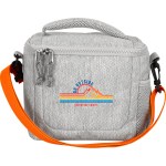 Stay cool and stylish with our insulated zippered cooler that features a convenient full-top opening for easy access. Keep your drinks chilled in style with the side mesh pocket and top handle for ultimate portability. The colorful adjustable shoulder strap adds a touch of flair and can be easily removed if desired. This cooler is designed to hold up to 6 12oz. cans, making it the perfect companion for any outing. Complies with FDA, Prop 65. 8.5″ L x 7.25″ H x 6.25″ H