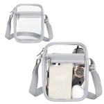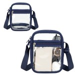 The AeroLOFT® Clear View Crossbody Stadium Bag is designed for quick entry and everyday convenience. Made of durable 290T polyester with a clear TPU body, it allows easy visibility for security checks at stadiums and events. The compact 2.1L capacity holds essentials like a phone, wallet, and keys, while the zippered main compartment and front pocket keep items organized. An adjustable shoulder strap offers comfortable, hands-free wear for concerts, travel, and daily use. Complies with Prop 65. 6.75″ L x 1.75″ W x 8.25″ H