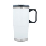 The Aidan 24 oz. Travel Mug is the ultimate companion for your on-the-go lifestyle whether you are sipping on hot coffee during your morning commute or enjoying iced tea in the office. The mug has a double wall construction and is made with a durable stainless steel outer wall and a polypropylene inner wall to keep the mug lightweight for easy traveling. It features an ergonomic handle that fits snugly in your grip, offering a secure and comfortable hold wherever your adventures take you and the sleek design allows it to effortlessly fit into most standard car cup holders, ensuring easy transport and accessibility while you are on the road. The clear push-on lid features a slider closure provides spill-resistant protection. BPA Free and FDA Compliant. Complies with Prop 65. 5″ W x 7 5/8″ H x 3 11/16″ D