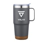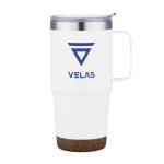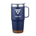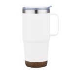 The 24oz Akira Travel Mug with Cork Bottom is the perfect size for your morning cup of joe! This double wall, powder coated, stainless steel mug features a handle for carrying and drinking convenience! Plus, the eco-friendly cork bottom gives an extra element of style. Product Size: 4.5″ W x 7.625″ H. 4.5″ W x 7.625″ H