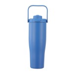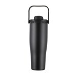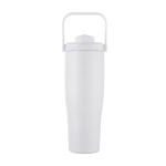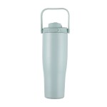 The Alaia 30oz Recycled Stainless Steel Vacuum Mug Tumbler is built for all-day hydration with a sleek, retail-inspired design. Double-wall vacuum insulation keeps drinks hot up to 7 hours and cold up to 40 hours. The dual-function lid features push-button chug access and a flip-up sipping nozzle. Made with recycled stainless steel and recycled plastic components, it offers durable performance, leak resistance, and a comfortable flip-up handle for easy carrying. A QR code is printed on the bottom of each drinkware item providing access to the latest user manual. Complies with FDA, Prop 65. 10.125″ H x 3.5″ Diameter
