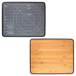 (Pricing Available Until December 31st) Our All-In-One Cutting & Serving Board provides the best of both worlds: with a bamboo side for carving, chopping, and slicing, and a poly side featuring a one-inch grid, diameters for making pie crusts, and several other measurements to make cook prep, baking prep, and serving a breeze. 15″ L x 12″ W x 0.625″ H
