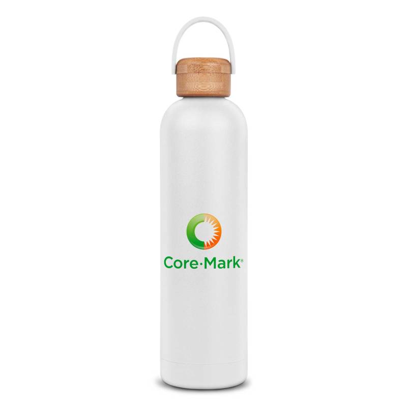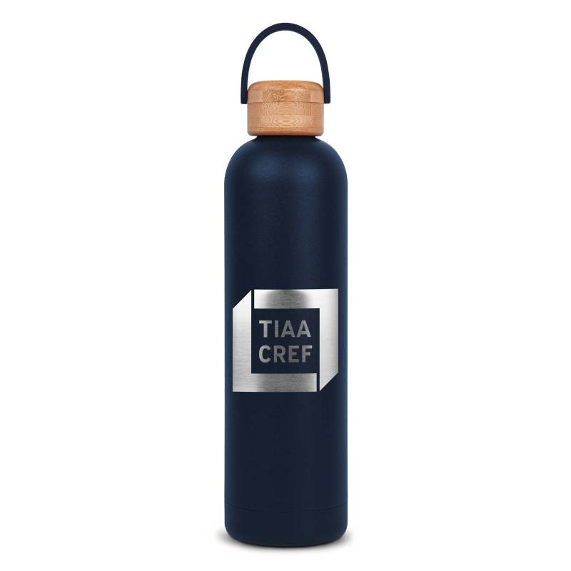 A beautifully-simple vacuum-insulated stainless steel water bottle, featuring a twist-on bamboo lid with silicone strap and durable powder coating. Keeps drinks hot for up to 12 hours and cold for up to 24 hours. Hand wash only, do not microwave. (Laser personalization cannot exceed 2.5″). Complies with Prop 65. 3″ W x 10 3/4″ H