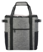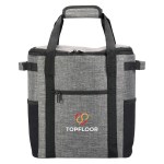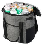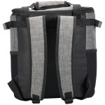 Dual top handles with hook and loop padded grip and side grab handles Front zippered pocket and stretch mesh side pockets Constructed of 300D heathered polyester with PEVA heat-sealed liner and 5MM foam insulation Adjustable air mesh padded shoulder straps for comfort Heat-sealed construction. 8″ D x 14″ W x 13″ H
