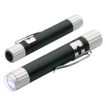 Bright LED light, Rubber on/off button, Powered by 4 LR44 button cell batteries, inserted. Complies with Prop 65. 3.625″ H x 0.625″ Diameter