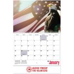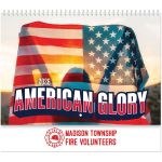 Custom Imprint the American Glory Spiral Wall Calendar. 13 Month Calendar; Celebrating American Spirit. 70# Gloss Text, 80# Text Cover. Four Lines of Copy. Made in the USA. Eco-friendly and Recyclable. Made from 10% post-consumer waste. Complies with Prop 65. 11″ W x 9.625″ H