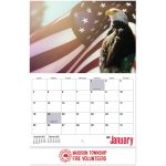 Custom Imprint the American Glory Stapled Wall Calendar. 13 Month Calendar; Celebrating American Spirit. 70# Gloss Text, 80# Text Cover. Four Lines of Copy. Made in the USA. Eco-friendly and Recyclable. Made from 10% post-consumer waste. Complies with Prop 65. 11″ W x 9.625″ H