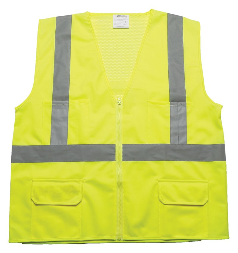 These polyester-mesh vests are light, easy to wear and comes in sizes L, XL & 2XL. They meet or exceed American National Institute Class 2 safety standards to help you get the job done. The design features a zippered front closure, two front and chest pockets and 2″ reflective striping. 3rd imprint option, On or Both Front Pockets, 3″w x 3″h. (1-color screen, or 2+ color heat transfer). Complies with ANSI, ISEA, Prop 65.