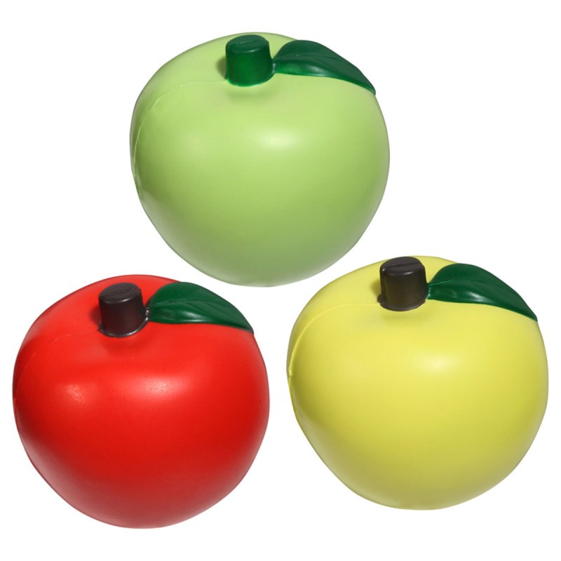 Apple shaped polyurethane stress reliever. Complies with ASTM, CCPSA, CPSIA, Prop 65. 3″ Diameter