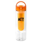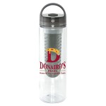Stay hydrated in style with our 24 oz. clear water bottle featuring a convenient screw-on lid with an infuser for adding your favorite fruits. Crafted from recycled PET, this eco-friendly bottle can hold 20-22 oz. of refreshing fruit-infused water. The lid is equipped with a silicone gasket and a rounded handle for easy carrying. For your peace of mind, this BPA-Free bottle is not suitable for dishwasher or microwave use. Enjoy the benefits of staying hydrated and environmentally conscious with our sleek and practical water bottle. Complies with FDA, Prop 65. 2.75″ D x 9.75″ H