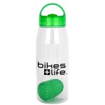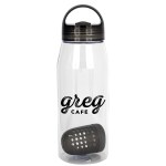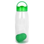 Introducing our stylish and practical 32 oz refillable water bottle, complete with a convenient floating infuser. This innovative design allows you to infuse your water with the delicious flavors of your favorite fruits, holding a generous 28-30 oz. The lid features a silicone gasket and a sleek rounded arch handle for easy carrying. Rest assured, our bottle is BPA free for your peace of mind. Please note that this product is not recommended for use in the dishwasher or microwave. Stay hydrated in style with our versatile and eco-friendly water bottle! Complies with Prop 65. 3.25″ D x 10.25″ H