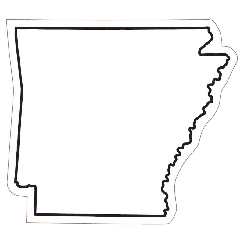 Magnet shaped like the state of Arkansas. Motto: The People Rule. Nickname: The Natural State. 3.03125″ W x 2.6875″ H x 0.01″ D