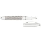 This solid brass rollerball features a Euro-style screw-off cap design, a woven steel barrel, chrome metal clip and trims, and a German-made black ink refill. Complies with Prop 65. 3/4″ W x 5 7/16″ H x 9/16″ D