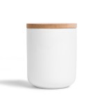 Elevate your ambiance with our Soy Wax Candle in a sleek ceramic jar, topped with a bamboo lid. A stylish blend of natural elegance and soothing fragrance. Scents include lemongrass, sandalwood and vanilla. 3″ H x 3″ Diameter