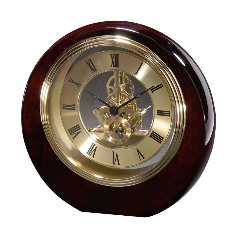 The beautiful inner workings of this skeleton clock are dramatically encased in polished rosewood. 8.0″ W x 8.0″ H x 2.0″ D