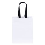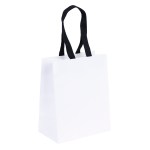 The Ash Woven-Handle White Eurotote is made with 120 GSM white paper and features distinctive black handles and a cardboard bottom insert. Handles measure 3/4″W x 12″ long. 7 3/4″ W x 4 3/4″ D x 9 3/4″ H