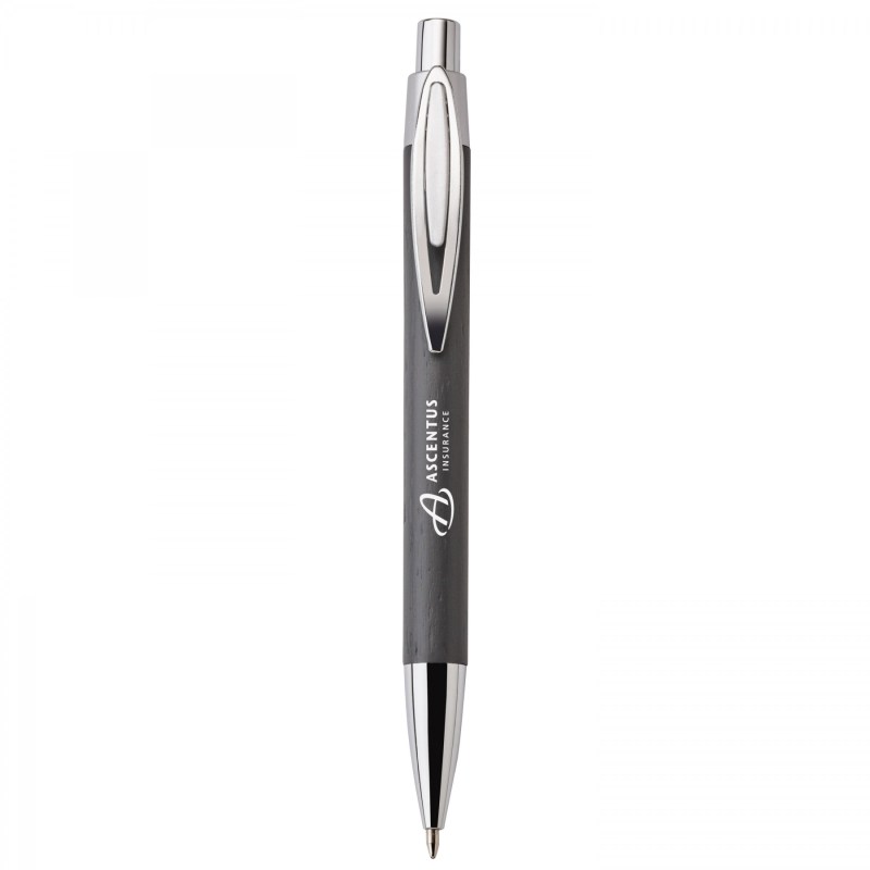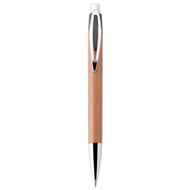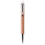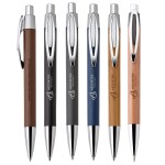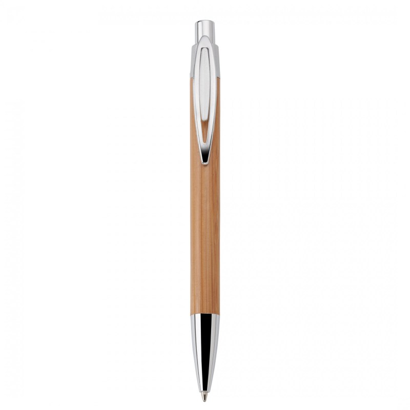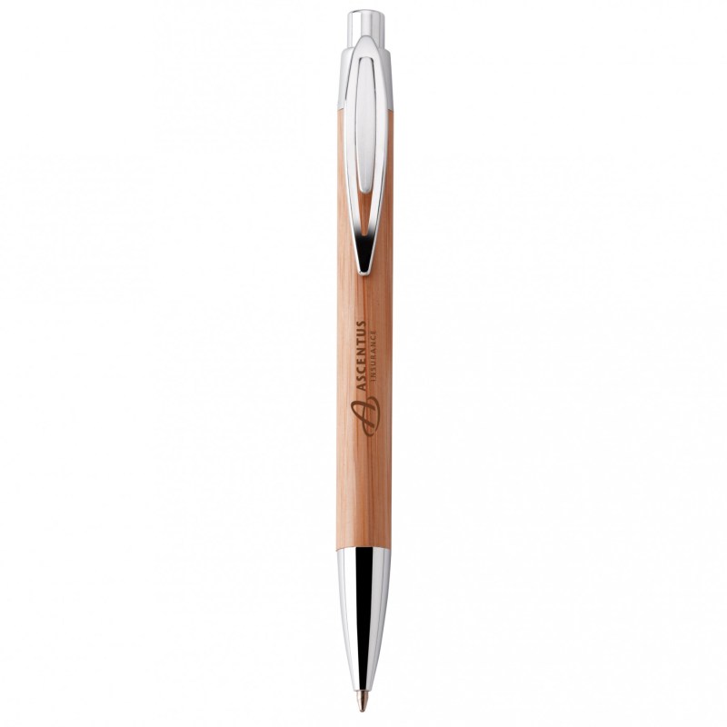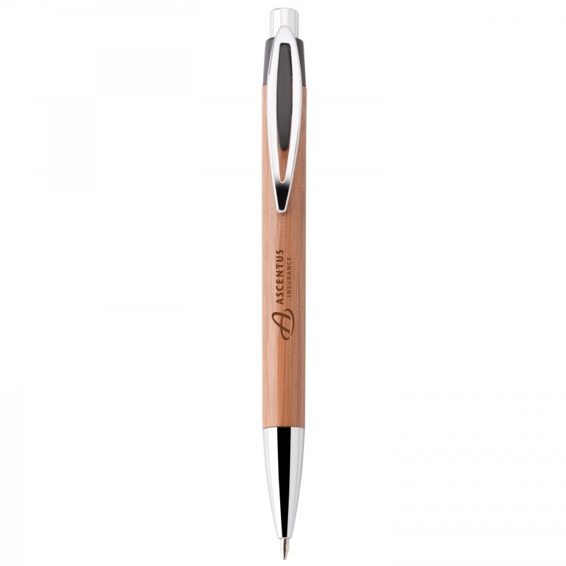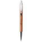 Bamboo and metal push-action pen with plastic trim. Trim made with 45% biodegradable materials. For best imprint results, we recommend PMS 877 or white ink on colored finish and PMS 469 ink on natural finish. NOTE Please note that bamboo is a natural fiber, therefore noticeable shade variations and grain patterns may be apparent within orders of the same item. Due to our high standards of quality control, we must advise that slight irregularities in the bamboo of this item may result in imprint imperfections but are consistent with the natural look of the product. 5.5000″ L x 0.0000″ W x 0.0000″ H