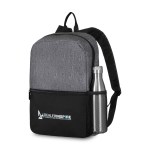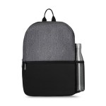 Simple, yet stylish for everyday use. Zippered opening to main compartment. Side mesh water bottle pocket. Front zippered pocket. Padded, adjustable shoulder straps. Top grab handle. Complies with CPSIA, Prop 65. 4.75″ W x 15.75″ H x 10.5″ L