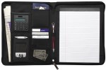 This sleek padfolio has a unique pebble-grain vinyl cover that zips shut. Inside you’ll find organizer pockets and a zippered mesh accessories pocket for all your gear. A calculator and writing pad are included. 10.5″ W x 13.5″ H x 1.5″ D