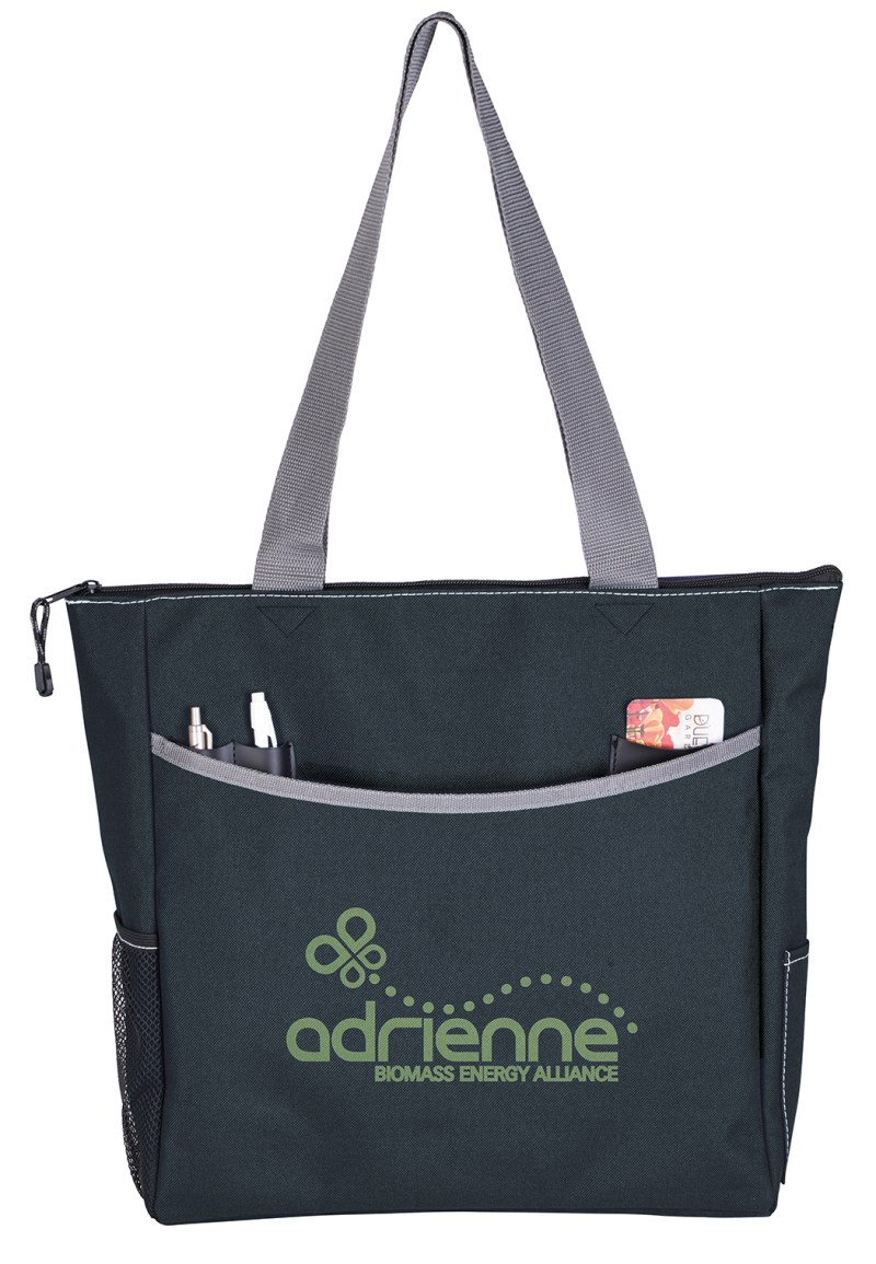 Do your part for the planet by staying organized with this eco-conscious tote. It comes complete with a front slip pocket, a mesh water bottle pocket, a side cell phone pocket, and pen & business card pockets. Reusing available materials saves resources and is one action we can all take to make the world a little greener. 13″ W x 14″ H x 4.5″ D