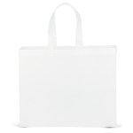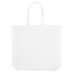 The Ava White Laminated Non-Woven Tote is an ultrasonic heat-sealed 95 GSM bag with lay-flat side and bottom gussets. An optional bottom board is available for purchase. Handles measure 1 1/8″W x 20″ long. 19″ W x 6″ D x 15″ H