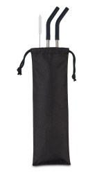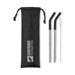Set of two straws come in a reusable travel pouch. Base is stainless steel with silicone top for comfortable sipping. Set includes a straw cleaning brush for easy care. Hand wash recommended (dishwasher safe, top rack). BPA free. Complies with CPSIA, Prop 65. 0.25″ W x 9.5″ H x 0.25″ L
