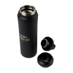 The Aviana(TM) Rowan Recycled Water Bottle offers sleek, on-the-go hydration with double-wall vacuum insulation to keep drinks cold for 18 hours or hot for 10. Made from recycled stainless steel with a sweat-proof matte finish, it features a two-piece lid, nonslip base, and cup-holder-friendly size. Complies with CPSIA, Prop 65. 2.68″ W x 9.33″ H x 2.68″ L