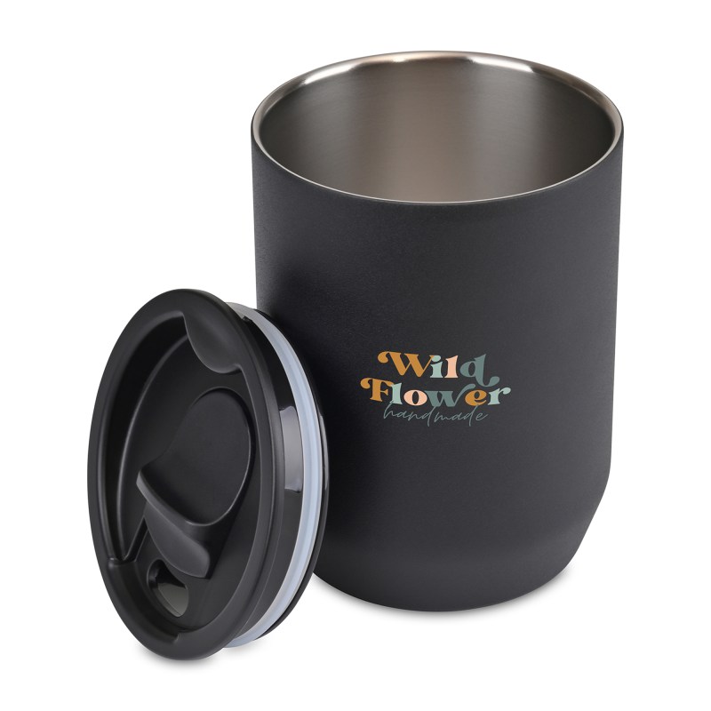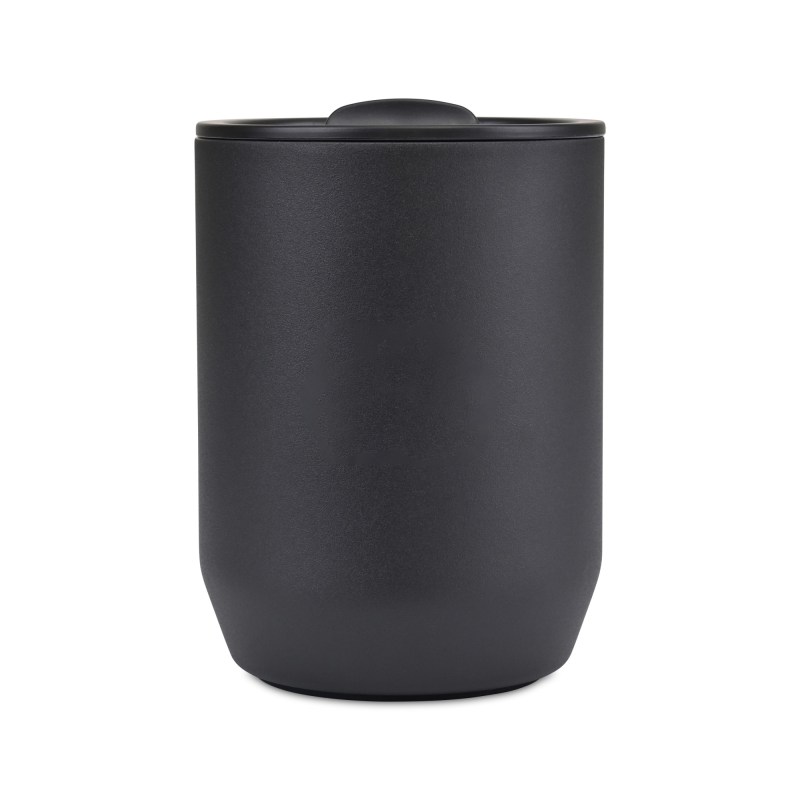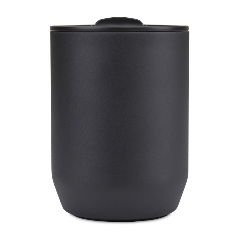 Recycled Stainless Steel Wine Tumbler with double-wall vacuum insulation, sweat-proof matte finish, and leak-resistant lid. Complies with CPSIA, Prop 65. 3.4″ W x 4.6″ H x 3.4″ L