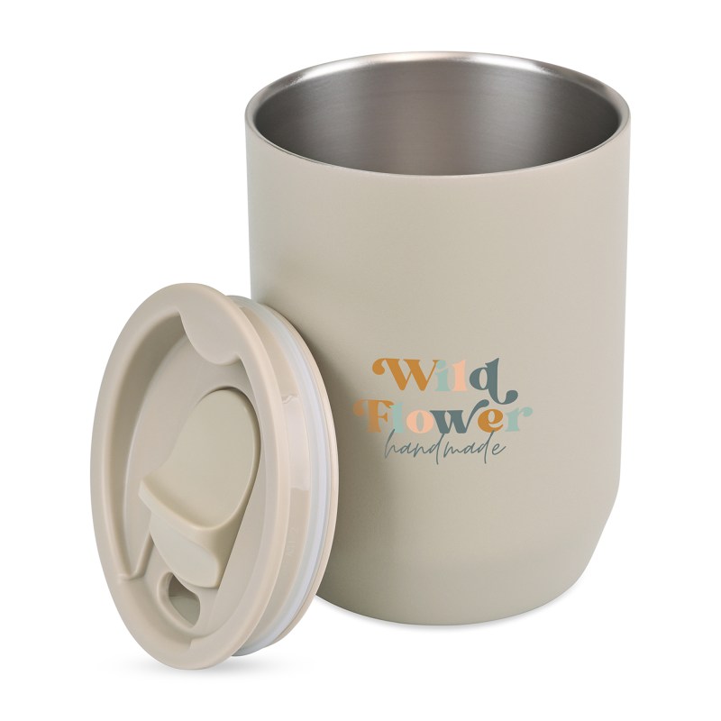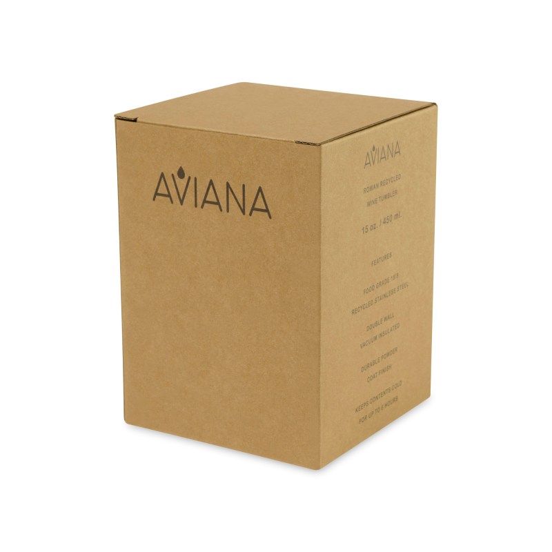 Recycled Stainless Steel Wine Tumbler with double-wall vacuum insulation, sweat-proof matte finish, and leak-resistant lid. Complies with CPSIA, Prop 65. 3.4″ W x 4.6″ H x 3.4″ L