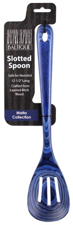 Add a splash of brilliant blue to your kitchen with the beautiful Baltique® Malta Collection Slotted Spoon. This eye-catching measuring spoon is masterfully crafted from layers of colored birch wood to create a gorgeously deep color. The Malta Collection features a blend of deep blues inspired by the refreshing waters surrounding the picturesque Mediterranean island. Complies with Prop 65. 12 1/2″ L