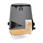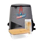 Introducing our eco-friendly collection: the Recycled Backpack Cooler crafted from recycled PET, the Bamboo Glass Container featuring a sustainable FSC bamboo lid, and the Bamboo Cutlery and Straw Set. Each item in this set is designed to reduce waste and promote sustainable living. Join us in making a positive impact on the environment with these stylish and practical alternatives. Complies with FDA, Prop 65. 9″ L x 12″ H x 7″ W