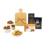 Expertly crafted from sustainable bamboo, this sleek and practical board comes complete with a handy knife spreader. Elevate your gifting experience with this elegant combination of style and flavor, designed to delight recipients and leave a lasting impression of thoughtfulness. Paired perfectly are savory Lark Artisanal Biscuits, irresistible Praline Nuts, Dipping Pretzels & Mustard. Food Net Weight 6 oz. Complies with CPSIA, Prop 65. 3.50″ W x 7″ H x 8.50″ L Gift meaningful gifts with this Perfectly Packaged Gift Set! Packed with our best selling items, this gift sets is perfect for new hires, executives, wellness initiatives and much more. Setup fee includes a one color, one location imprint on each item.
