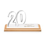 Show your appreciation for long-tenured team members with an award that reflects their commitment and the value they bring to your organization. Crafted from brilliantly polished Starfire crystal, each Bamboo Era Award is designed to celebrate service milestones in 5-year increments, from 5 to 50 years. A triple-stepped bamboo base adds warmth and dimension for a modern, elevated look. Please note that natural wood material will vary in grain. 6″ W x 3.5″ H x 3″ D