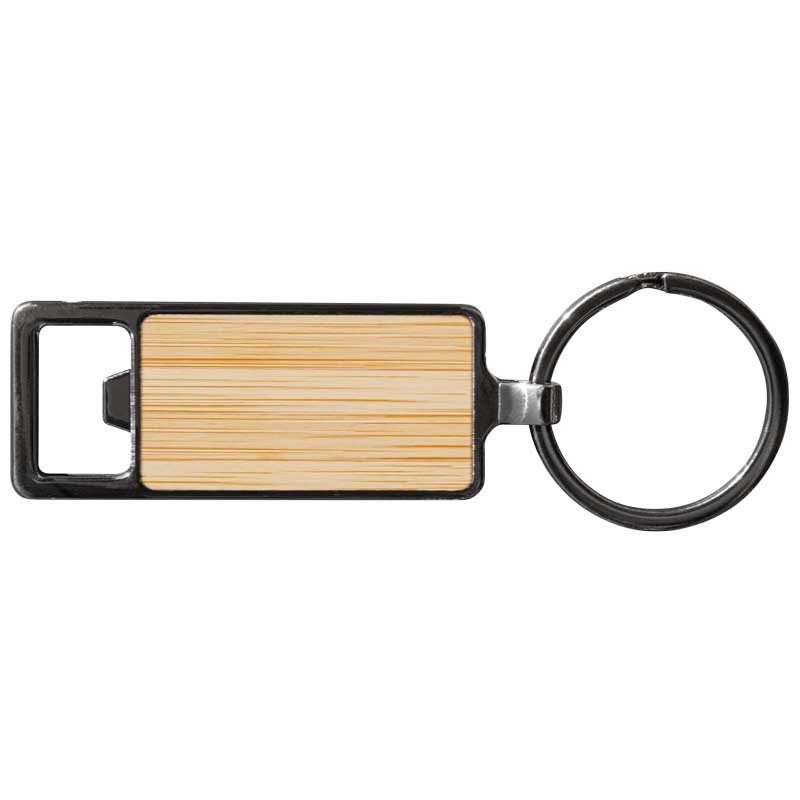 Elevate your everyday essentials with the bamboo key chain bottle opener, a stunning fusion of natural elegance and modern design. This unique key chain seamlessly combines the warmth of real bamboo with the sleekness of a gunmetal-plated zinc alloy, creating a timeless accessory that reflects your refined taste. Metal is a zinc alloy with gunmetal plating. Key chain front features real bamboo. It has a 35 mm split ring also with the gunmetal plating. Gift box is included. Complies with Prop 65.