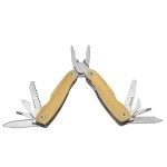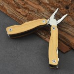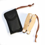 9pc Pocket Multi-Tool in Bamboo. Built from stainless-steel and covered in sustainable bamboo wood. Will not bend, break or rust. Smaller than a credit-card, fits in a wallet, purse, toolbox or glove-box. 9 Great Tools: Pliers, Bottle Opener, Knife Blade, Flathead Screwdriver, Butterfly Wrench, Saw Blade, Nail File, Hole Punch. Complies with Prop 65. 2.8″ W x 1.2″ H x 0.5″ Thick